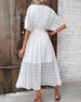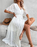 SPECIFICATIONS Style: Elegant Material: Cotton Blends Dress Type: A-Line Dress Length: Midi Neckline: V neck_V Pattern Type: Solid Color Sleeve Type: Regular sleeve Sleeve Length: Short Sleeve Details: Lace Up Fit Type: Regular Season: Spring, Summer, Fall Occasion: Daily Package Includes: 1 x Dress (With Belt) SIZE TABLE Size ...