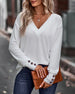 SPECIFICATIONS Top Type: Tops Style: Casual, Business Material: Cotton Blends Occasion: Daily, Work Neckline: V neck_V Pattern Type: Solid Color Sleeve Type: Regular sleeve Sleeve Length: Long Sleeve Fit Type: Loose Season: Spring, Fall, Winter Details: Buttons Package Includes: 1 x Top SIZE TABLE Size Bust Length Sleeve Leng...