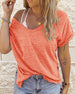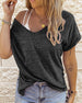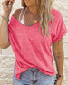 SPECIFICATIONS Top Type: T-shirt Style: Casual Material: Cotton Blends Occasion: Daily Neckline: V neck_V Pattern Type: Solid Color Sleeve Type: Raglan sleeve Sleeve Length: Short Sleeve Fit Type: Regular Season: Spring, Summer, Fall Package Includes: 1 x T-shirt SIZE TABLE (cm) Size Bust Length Sleeve Length CM INCH CM INC...