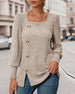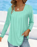 SPECIFICATIONS Top Type: Tops Style: Casual Material: Cotton Blends Occasion: Daily Neckline: Square Neck Pattern Type: Solid Color Sleeve Type: Regular sleeve Sleeve Length: Long Sleeve Fit Type: Regular Season: Spring, Summer, Fall Details: Shirred Package Includes: 1 x Top SIZE TABLE Size Bust Length Sleeve Length CM INC...