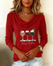 SPECIFICATIONS Top Type: Tops Style: Casual Material: Cotton Blends Occasion: Daily Neckline: Cowl Neck Pattern Type: Print Sleeve Type: Regular sleeve Sleeve Length: Long Sleeve Fit Type: Regular Season: Fall,Winter Package Includes: 1 x Top SIZE TABLE Size Bust Length CM INCH CM INCH S 92 36.22 65 25.59 M 96 37.8 66.5 26.18 L 10...