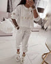 SPECIFICATIONS Style: Casual Top Type: T-shirt Category: Sets Material: Cotton Blends Pattern Type: Print Neckline: Round Neck Sleeve Type: Regular sleeve Sleeve Length: Short Sleeve Pants Type: Sweatpant Pants Length: 3/4 Long Waist Type: Mid Waist Fit Type: Regular Season: Spring,Summer Details: Pocket,Lace Up,Drawstring Occasion: Daily Pack...