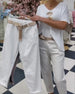 SPECIFICATIONS Top Type: Tops Style: Elegant, Business Material: Cotton Blends, Lace Occasion: Daily, Work Neckline: V neck_V Pattern Type: Solid Color Sleeve Type: Regular sleeve Sleeve Length: Short Sleeve Fit Type: Regular Season: Spring, Summer, Fall Details: Patchwork Package Includes: 1 x Top SIZE TABLE Size Bust Length C...