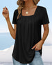 SPECIFICATIONS Top Type: T-shirt Style: Elegant Material: Cotton Blends Occasion: Daily, Work Neckline: Square Neck Pattern Type: Solid Color Sleeve Type: Regular sleeve Sleeve Length: Short Sleeve Fit Type: Regular Season: Spring, Summer, Fall Details: Shirred Package Includes: 1 x T-shirt SIZE TABLE Size Bust Length CM INCH...