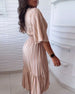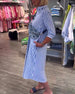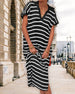SPECIFICATIONS Style: Casual Material: Cotton Blends Dress Type: A-Line Dress Length: Midi Neckline: V neck_V Pattern Type: Striped Sleeve Type: Flare Sleeve Sleeve Length: Half Sleeve Details: Patchwork,Drawstring Fit Type: Regular Season: Spring,Summer,Fall Occasion: Daily Package Includes: 1 x Dress SIZE TABLE Size Bust Length...