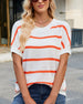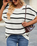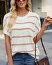 SPECIFICATIONS Category: Pullovers Style: Casual Material: Acrylic,Polyester Neckline: Round Neck Pattern Type: Striped,Color Block Sleeve Type: Dropped shoulder Sleeve Length: Short Sleeve Fit Type: Regular Occasion: Daily Season: Spring,Summer,Fall Package Includes: 1 x Pullover SIZE TABLE Size Bust Shoulder Length CM INCH CM INCH...