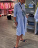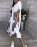 SPECIFICATIONS Style: Casual Material: Cotton,Polyester Dress Type: Shift dress Dress Length: Midi Neckline: Lapel Pattern Type: Striped Sleeve Type: Regular sleeve Sleeve Length: Short Sleeve Details: Slit Fit Type: Regular Season: Spring,Summer Occasion: Daily Package Includes: 1 x Dress SIZE TABLE Size Shoulder Bust Length CM I...