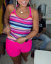 SPECIFICATIONS Style: Vacation Material: 15% Spandex,85% Polyester Occasion: Vacation Neckline: Spaghetti Straps Pattern Type: Striped Sleeve Length: Sleeveless Top Type: Tankini Bra Type: Wireless Bra Bottom Type: Shorts Fit Type: Regular Season: Spring,Summer Details: Backless Package Includes: 1 x Tankini SIZE TABLE Size Bust Waist Hip Un...
