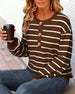SPECIFICATIONS Category: Pullovers Style: Casual Material: Acrylic,Spandex,Polyester Neckline: Round Neck Pattern Type: Striped Sleeve Type: Dropped shoulder Sleeve Length: Long Sleeve Details: Buttons Fit Type: Regular Occasion: Daily Season: Fall,Winter Package Includes: 1 x Pullover SIZE TABLE Size Bust Length CM INCH CM INCH S...