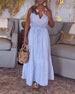 SPECIFICATIONS Style: Casual Material: Cotton Blends Dress Type: A-Line Dress Length: Maxi Neckline: V neck_V Pattern Type: Striped Sleeve Length: Sleeveless Details: Drawstring Fit Type: Regular Season: Summer Occasion: Daily Package Includes: 1 x Dress SIZE TABLE Size Bust Length CM INCH CM INCH S 95 37.40 128 50.39 M 100 39...