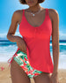 SPECIFICATIONS Style: Vacation Material: 15% Spandex,85% Polyester Occasion: Vacation Neckline: U Neck_U Pattern Type: Print Sleeve Length: Sleeveless Top Type: Tankini Bra Type: Wireless Bra Bottom Type: Shorts Fit Type: Regular Season: Spring,Summer Package Includes: 1 x Tankini SIZE TABLE Size Bust Waist Hip Under bust CM INCH CM INCH C...