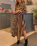 SPECIFICATIONS Category: Pullovers Style: Casual Material: 100% Polyester Neckline: Stand Collar Pattern Type: Striped Sleeve Type: Dropped shoulder Sleeve Length: Long Sleeve Details: Slit Fit Type: Regular Occasion: Daily Season: Spring, Fall, Winter Package Includes: 1 x Pullover SIZE TABLE Size Bust Length Sleeves CM I...