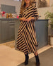 SPECIFICATIONS Style: Casual Material: Cotton Blends Dress Length: Midi Neckline: Round Neck Pattern Type: Striped Sleeve Type: Regular sleeve Sleeve Length: 3/4 Sleeve Fit Type: Regular Season: Spring, Fall Occasion: Daily Package Includes: 1 x Dress SIZE TABLE Size Bust Length CM INCH CM INCH S 95 37 120 47 M 100 39 121.5 48 ...