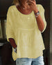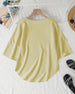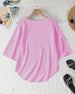 SPECIFICATIONS Top Type: Tops Style: Casual Material: 100% Polyester Occasion: Daily Neckline: Round Neck Pattern Type: Striped Sleeve Type: Dropped shoulder Sleeve Length: 3/4 Sleeve Fit Type: Regular Season: Spring, Summer, Fall Details: Patchwork Package Includes: 1 x Top SIZE TABLE Size Bust Length CM INCH CM INCH S 110 43.31...