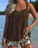SPECIFICATIONS Style: Vacation Material: 15% Spandex,85% Polyester Occasion: Vacation Pattern Type: Print Sleeve Length: Sleeveless Top Type: Tankini Bra Type: Wireless Bra Bottom Type: Shorts Fit Type: Skinny Details: Backless Package Includes: 1 x Tankini SIZE TABLE Size Bust Waist Hip Under bust CM INCH CM INCH CM INCH CM INCH S 88 34...