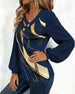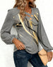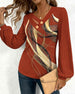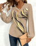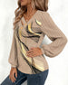 SPECIFICATIONS Top Type: Tops Style: Casual Material: Cotton Blends Occasion: Daily Neckline: V neck_V Pattern Type: Print Sleeve Type: Lantern Sleeve Sleeve Length: Long Sleeve Fit Type: Regular Season: Fall,Winter Package Includes: 1 x Top SIZE TABLE Size Bust Length CM INCH CM INCH S 92 36.22 68 26.77 M 96 37.8 69.5 27.36 L 100 3...