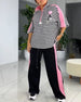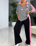 SPECIFICATIONS Style: Casual Top Type: Blouses Category: Sets Material: Cotton Blends Pattern Type: Striped,Print Neckline: Lapel Sleeve Type: Regular sleeve Sleeve Length: Half Sleeve Pants Length: Long Waist Type: High Waist Fit Type: Regular Season: Spring,Summer Details: Pocket,Zipper Occasion: Daily Package Includes: 1 x Blouse, 1 x Pants...