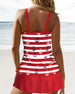 SPECIFICATIONS Style: Vacation Material: 15% Spandex, 85% Polyester Occasion: Vacation Neckline: Spaghetti Straps Pattern Type: Print Sleeve Length: Sleeveless Top Type: Tankini Bra Type: Wireless Bra Bottom Type: Natural Fit Type: Skinny Season: Summer Details: Patchwork Package Includes: 1 x Tankini SIZE TABLE Size Bust...