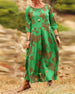 SPECIFICATIONS Style: Casual Material: Cotton Blends Dress Type: A-Line Dress Length: Maxi Neckline: Round Neck Pattern Type: Print Sleeve Type: Regular sleeve Sleeve Length: 3/4 Sleeve Details: Shirred Fit Type: Regular Season: Spring,Fall,Winter Occasion: Daily Package Includes: 1 x Dress SIZE TABLE Size Bust Length CM INCH CM I...