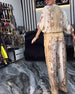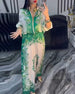Temperament Long-Sleeved Printed Wide-Leg Suit