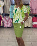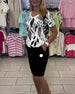 Temperament Printed Lantern Sleeves Casual Dress Set