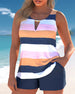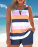 SPECIFICATIONS Style: Vacation Material: 15% Spandex, 85% Polyester Occasion: Vacation Neckline: Round Neck Pattern Type: Striped Sleeve Length: Sleeveless Top Type: Tankini Bra Type: Wireless Bra Bottom Type: Shorts Fit Type: Skinny Season: Summer Package Includes: 1 x Tankini SIZE TABLE Size Bust Waist Hip Under bust CM INCH CM INCH...