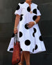 Casual Short-Sleeved Slit Round Neck Printed Dress