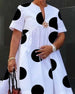 SPECIFICATIONS Style: Casual Material: Cotton Blends Dress Type: A-Line Dress Length: Knee Length Neckline: V neck_V Pattern Type: Polka Dot Sleeve Type: Regular sleeve Sleeve Length: Short Sleeve Fit Type: Loose Season: Summer Occasion: Daily Package Includes: 1 x Dress SIZE TABLE Size Bust Length CM INCH CM INCH S 95 37.4 1...