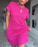SPECIFICATIONS Style: Casual Material: 95% Polyester, 5% Spandex Dress Type: Shift dress Dress Length: Knee Length Neckline: Round Neck Pattern Type: Solid Color Sleeve Type: Regular sleeve Sleeve Length: Half Sleeve Details: Hot Drilling Fit Type: Regular Season: Fall,Winter Occasion: Daily Package Includes: 1 x Dress SIZE TABLE Size B...