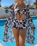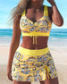 SPECIFICATIONS Style: Vacation, Sexy Occasion: Vacation Neckline: U Neck_U Pattern Type: Print Sleeve Length: Sleeveless Top Type: Bikini, Cover up Bra Type: Wireless Bra Bottom Type: Shorts Fit Type: Skinny Material: 15% Spandex, 85% Polyester Season: Summer Details: Drawstring Package Includes: 1 x Bikini, 1 x Cover up SIZE TABLE (cm) ...