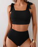 SPECIFICATIONS Style: Vacation Material: 82% Chinlon,18% Spandex Occasion: Vacation Neckline: Square Neck Pattern Type: Solid Color Sleeve Length: Sleeveless Top Type: Bikini Bra Type: Wireless Bra Bottom Type: High Cut Fit Type: Skinny Details: Backless,Lace Up Package Includes: 1 x Bikini SIZE TABLE Size Bust Waist Hip Under bust CM INCH...