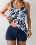 Two-Piece Body-Covering Printed Boxer Swimsuit