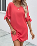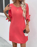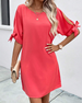SPECIFICATIONS Style: Elegant Material: Cotton Blends Dress Type: Shift dress Dress Length: Knee Length Neckline: Round Neck Pattern Type: Solid Color Sleeve Type: Slit Sleeves Sleeve Length: Half Sleeve Details: Knot Fit Type: Regular Season: Spring, Summer, Fall Occasion: Daily Package Includes: 1 x Dress SIZE TABLE Size Bu...