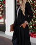 Twist-Knot V-Neck Long-Sleeved Velvet Dress