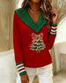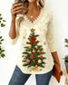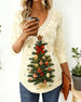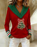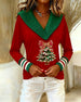 V-Neck Christmas Tree Print Long Sleeve Top