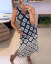 V-Neck Diamond Print Sleeveless Dress