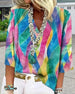V-Neck Colorful Vertical Striped Print Top