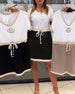 V-Neck Elegant Midi Skirt Fashion Set