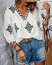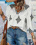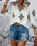 V-Neck Casual Printed Short-Sleeved Blouse