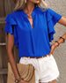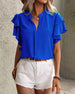 V-Neck Double-Layer Ruffle Short-Sleeved Blouse