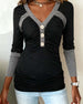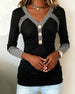 SPECIFICATIONS Top Type: Tops Style: Casual Material: Cotton Blends Occasion: Daily Neckline: V neck_V Pattern Type: Color Block Sleeve Type: Regular sleeve Sleeve Length: Long Sleeve Fit Type: Loose Season: Fall,Winter Details: Buttons Package Includes: 1 x Top SIZE TABLE Size Bust Length CM INCH CM INCH S 97 38.19 65 25.59 M...
