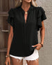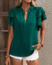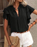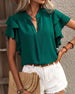 SPECIFICATIONS Top Type: Blouses Style: Casual Material: Cotton Blends Occasion: Daily Neckline: V neck_V Pattern Type: Solid Color Sleeve Type: Ruffle Sleeve Sleeve Length: Short Sleeve Fit Type: Regular Season: Spring,Summer Details: Ruffle Package Includes: 1 x Blouse SIZE TABLE Size Bust Shoulder Length Sleeves CM INCH CM I...
