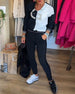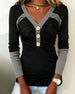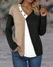 V-Neck Contrast Solid Color Long-Sleeved Top