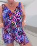 V-Neck Colorful Print One-Piece Swimsuit