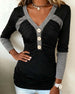 V-neck contrast color stitching top
