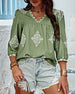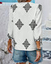 V-Neck Diamond Print Three-Quarter Sleeve Blouse