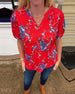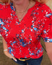V-Neck Floral Print Short-Sleeved T-Shirt