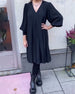 SPECIFICATIONS Style: Casual Material: 95% polyester, 5% spandex Dress Type: A-Line Dress Length: Knee Length Neckline: V neck_V Pattern Type: Solid Color Sleeve Type: Flare Sleeve Sleeve Length: Long Sleeve Details: Slit, Shirred Fit Type: Regular Season: Spring, Fall Occasion: Daily, Vacation Package Includes: 1 x Dress SIZE TABLE ...