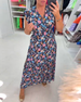 SPECIFICATIONS Style: Casual Material: Cotton Blends Dress Type: A-Line Dress Length: Midi Neckline: V neck_V Pattern Type: Floral, Print Sleeve Type: Regular sleeve Sleeve Length: Short Sleeve Fit Type: Regular Season: Spring, Summer, Fall Occasion: Daily Package Includes: 1 x Dress SIZE TABLE Size Bust Length cm inch cm inc...