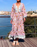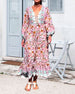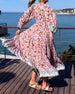 SPECIFICATIONS Style: Casual, Elegant Material: Cotton Blends Dress Length: Maxi Neckline: V neck_V Pattern Type: Floral Sleeve Type: Regular sleeve Sleeve Length: 3/4 Sleeve Details: Lace Up Fit Type: Regular Season: Spring, Summer Occasion: Daily, Vacation Package Includes: 1 x Dress SIZE TABLE Size Bust Length CM IN CM IN S 95 3...